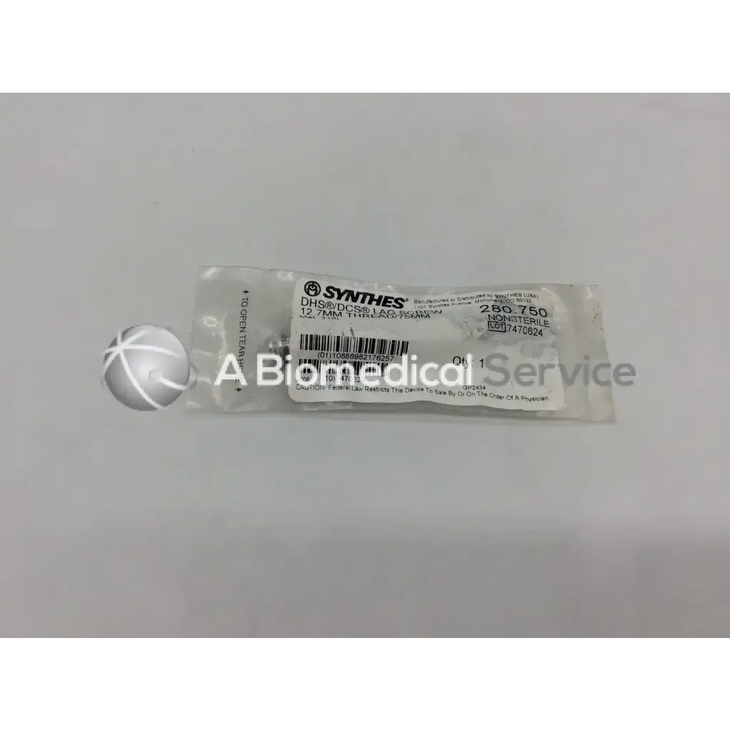 Synthes 280.750 Lag Screw 12.7mm Thread 75mm